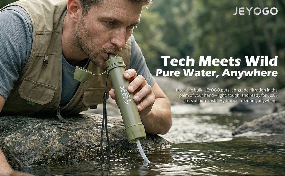 JEYOGO Water Filter Straw - Personal Portable Water Purifier for Hiking, Camping, Emergency Gear & Survival Kit | SGS Tested for Safety | Outdoor Gear